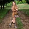 The Great Plains Bailey Bag features luxurious hair on hide with leopard print and copper foil accents. Finished with genuine full grain oiled and waxed leather makes this the perfect accessory for any outfit.